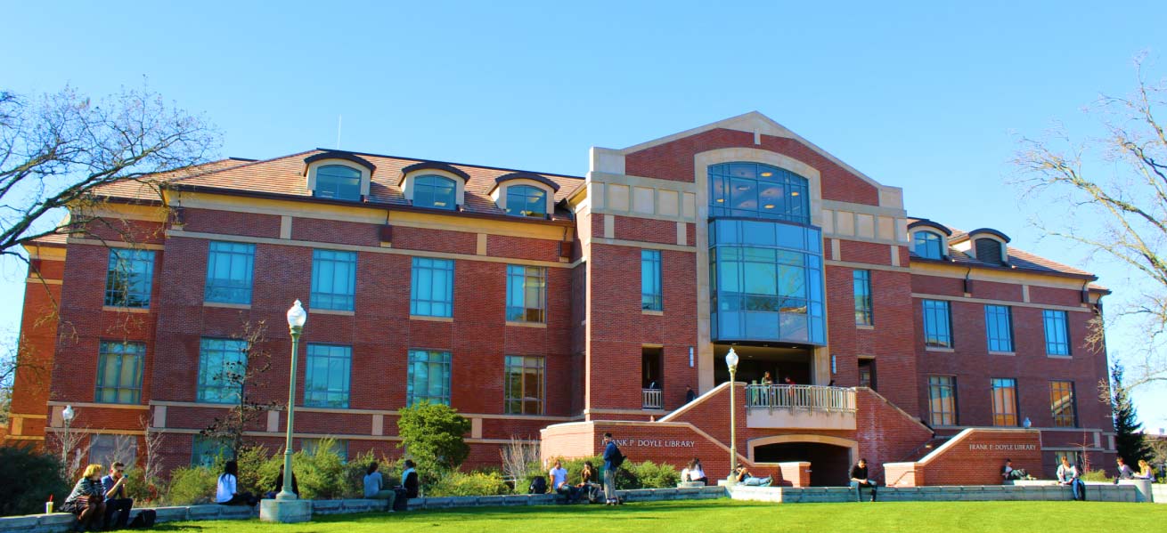 The Frank P. Doyle Library was completed in 2006. It is a four-story structure that includes multiple study spaces, Media Services, the Tutorial Center, and the Robert F. Agrella Art Gallery.